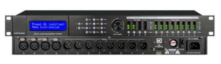 4.输出处理部分包含分频,8段参量均衡,增益,静音,压缩/限幅器,相位,延时,连动调节等处理功能。